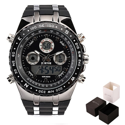 Feature: Complete Calendar,Stop Watch,LED display,Week Display,Water Resistant,Diver,Back Light,Chronograph,Multiple Time Zone,Swim,Alarm,Luminous